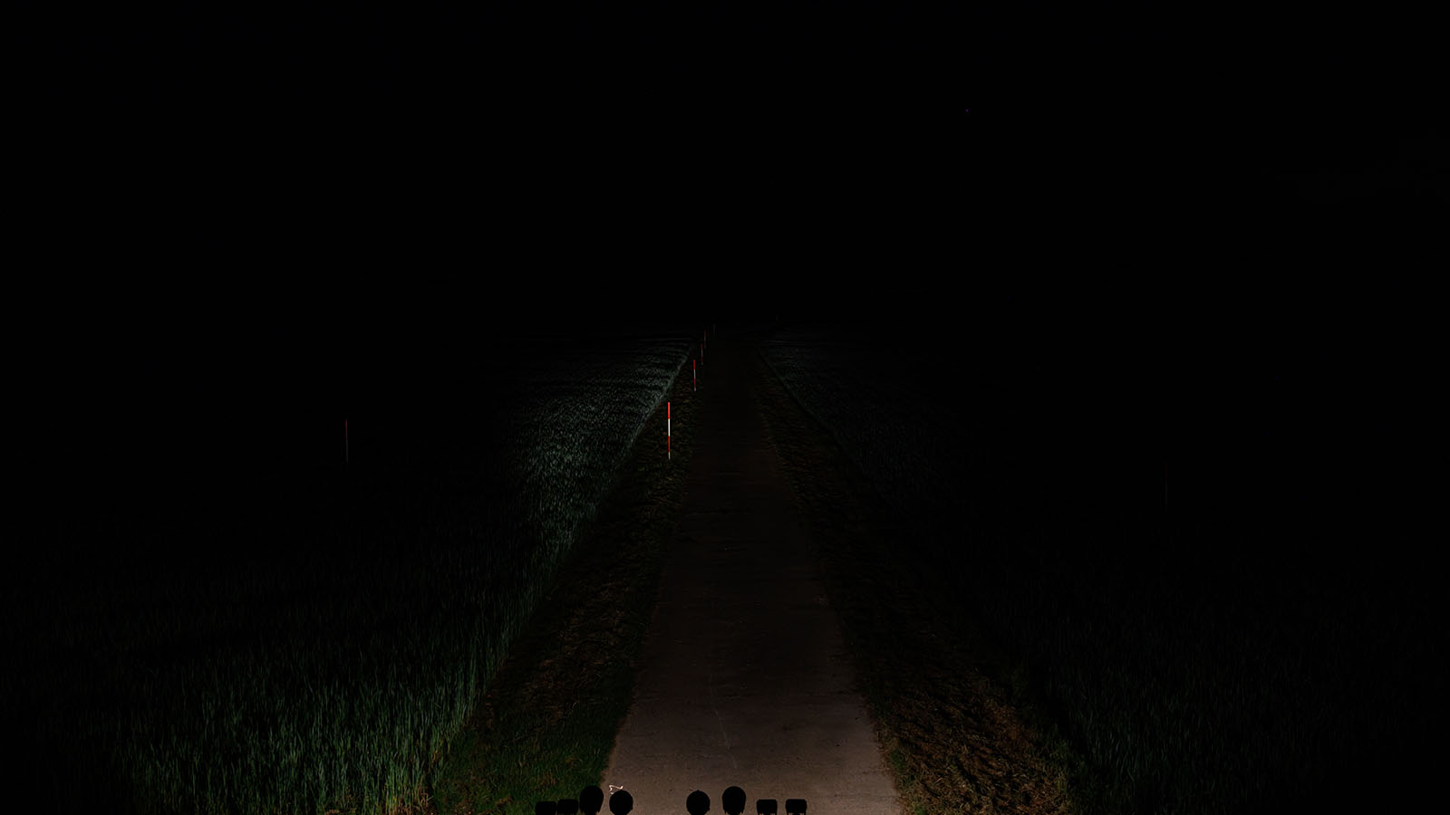 Wie unser Set im Vergleich zur regulären Halogenbeleuchtung besticht zeigen wir dir nachfolgend. Selbstverständlich fotografiert mit gleicher Kameraeinstellung und einem Richtstababstand von 25m.